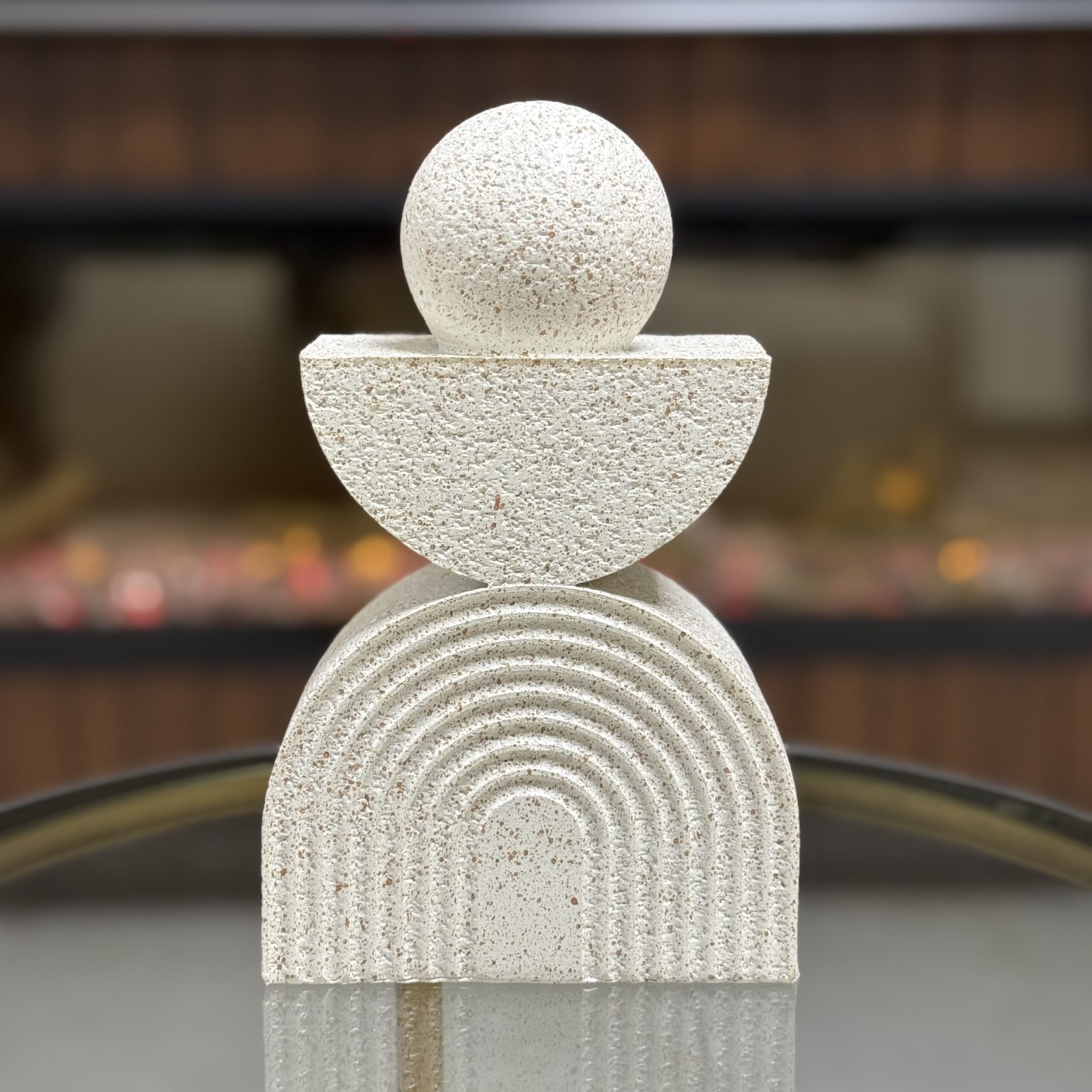A modern sculptural candle holder featuring layered geometric forms and soft textures. Designed to embody balance and calm, it adds a refined, artistic touch to contemporary interiors.