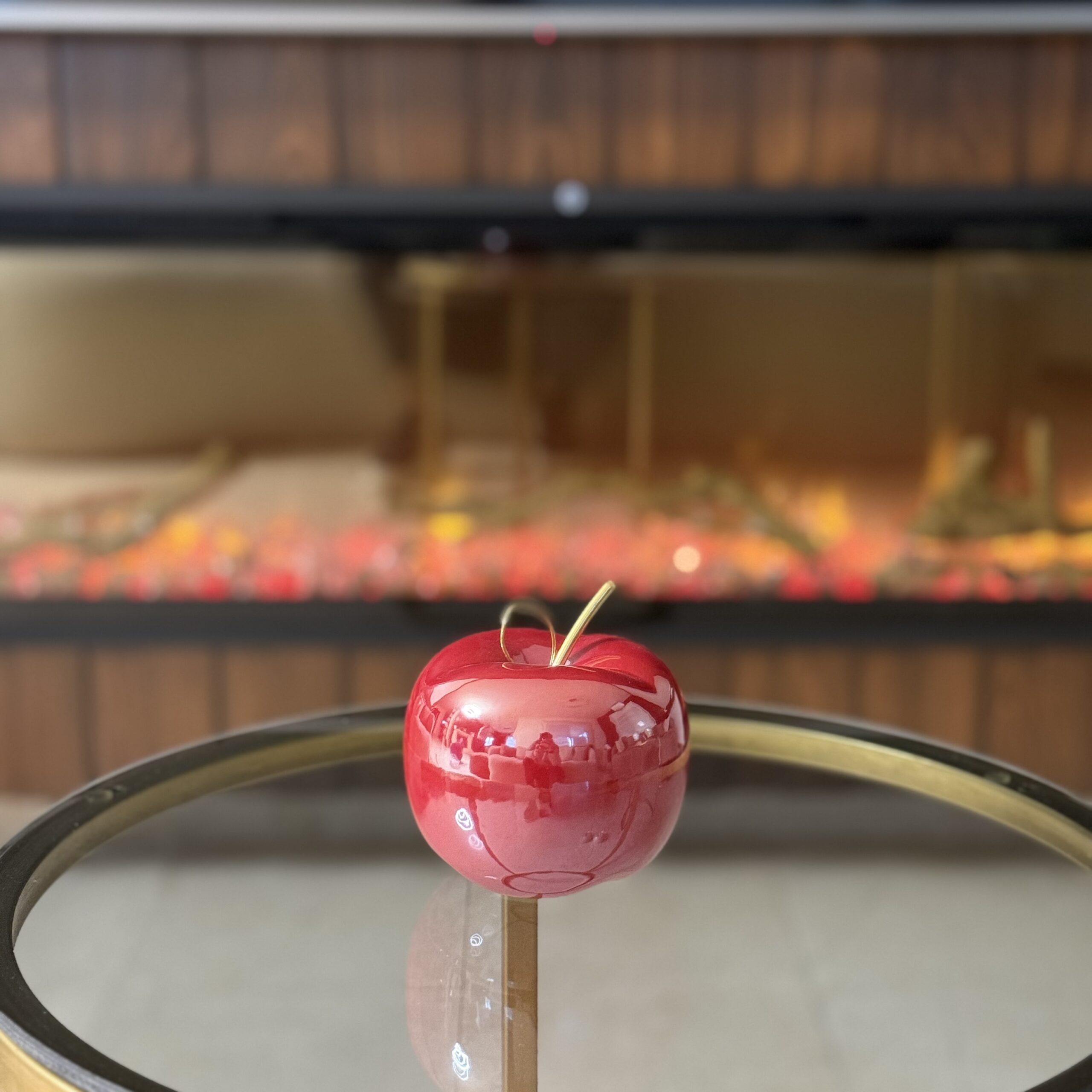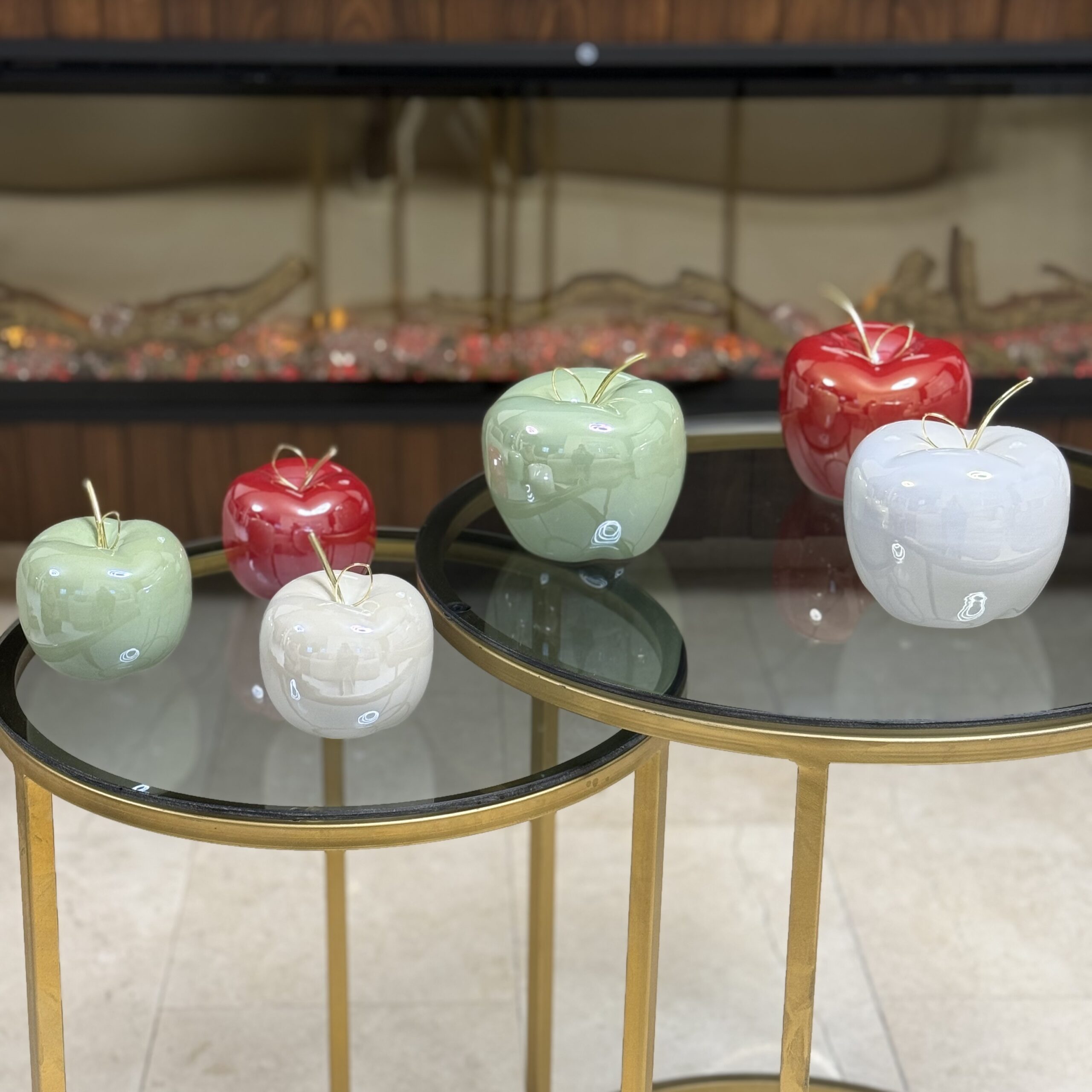 A stylish ceramic apple with a glossy finish, perfect for adding a subtle touch of elegance to any space.