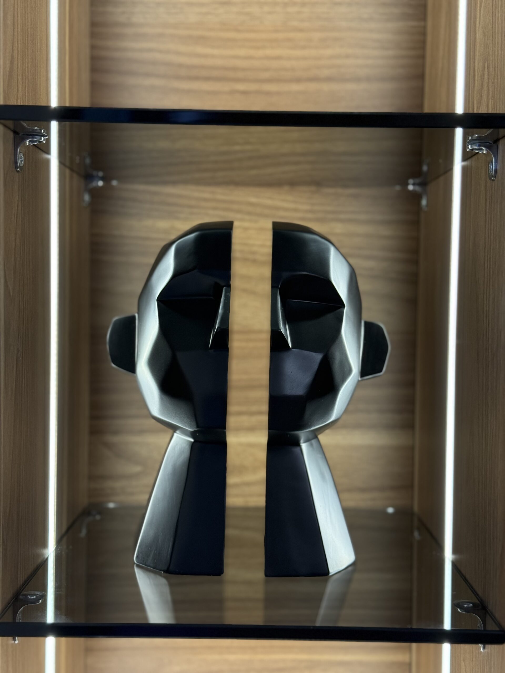 A striking resin sculpture featuring a faceless, detached head design. Available in sleek black and white, it adds a bold, modern touch to any living space, perfect for contemporary home decor.