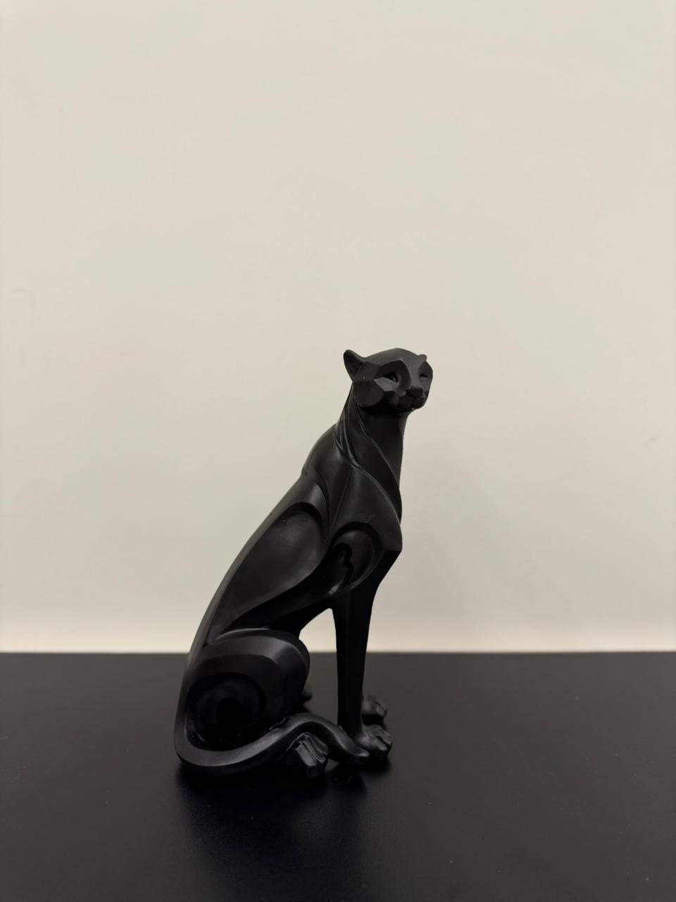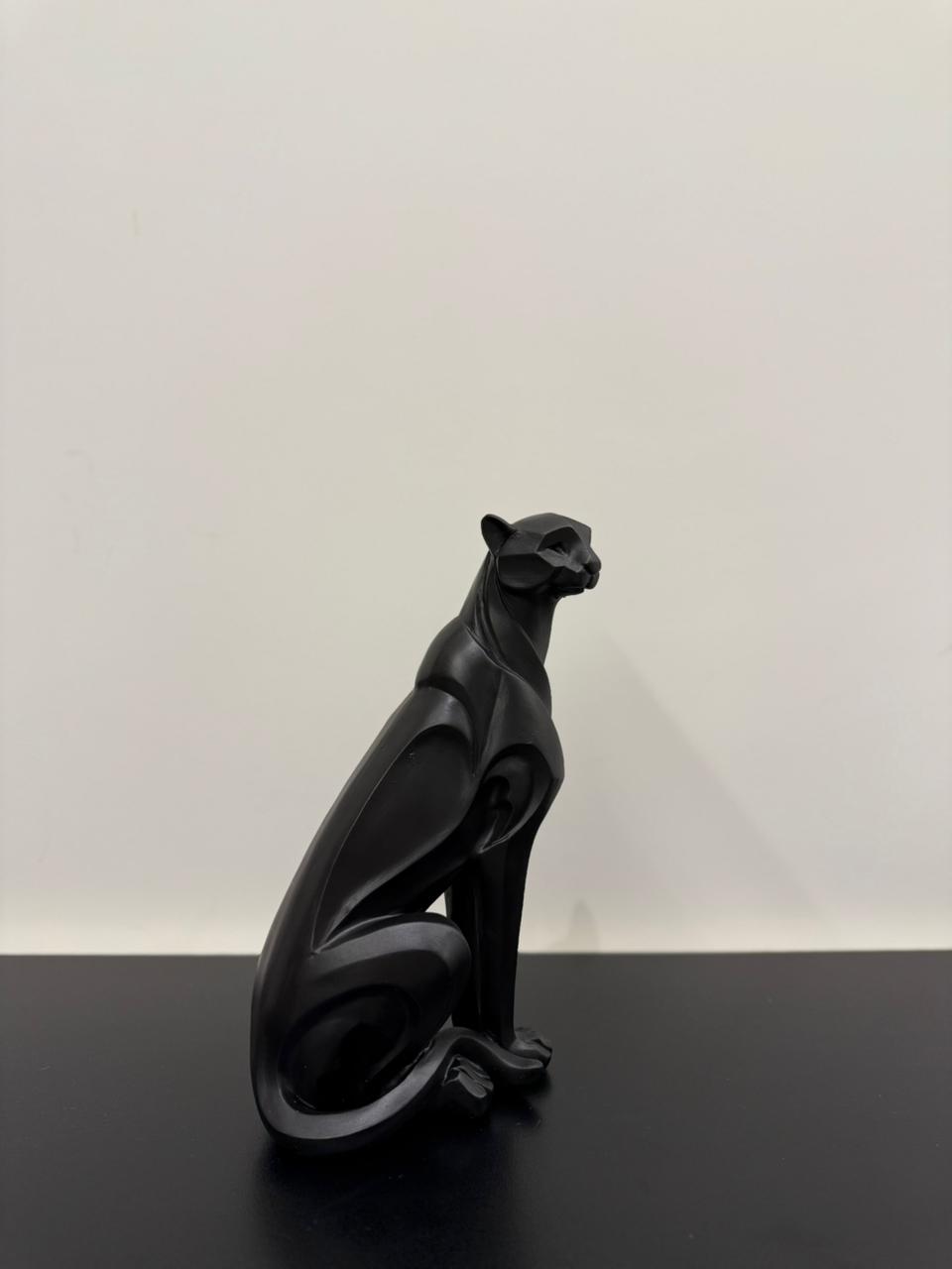 Unleash bold sophistication with this striking geometric jaguar sculpture, masterfully crafted in sleek black resin. With angular lines and a powerful stance, the jaguar stands poised and fierce, its head slightly turned as if surveying its domain. A statement piece that blends modern design with primal energy—perfect for contemporary interiors or as a symbol of strength and grace.