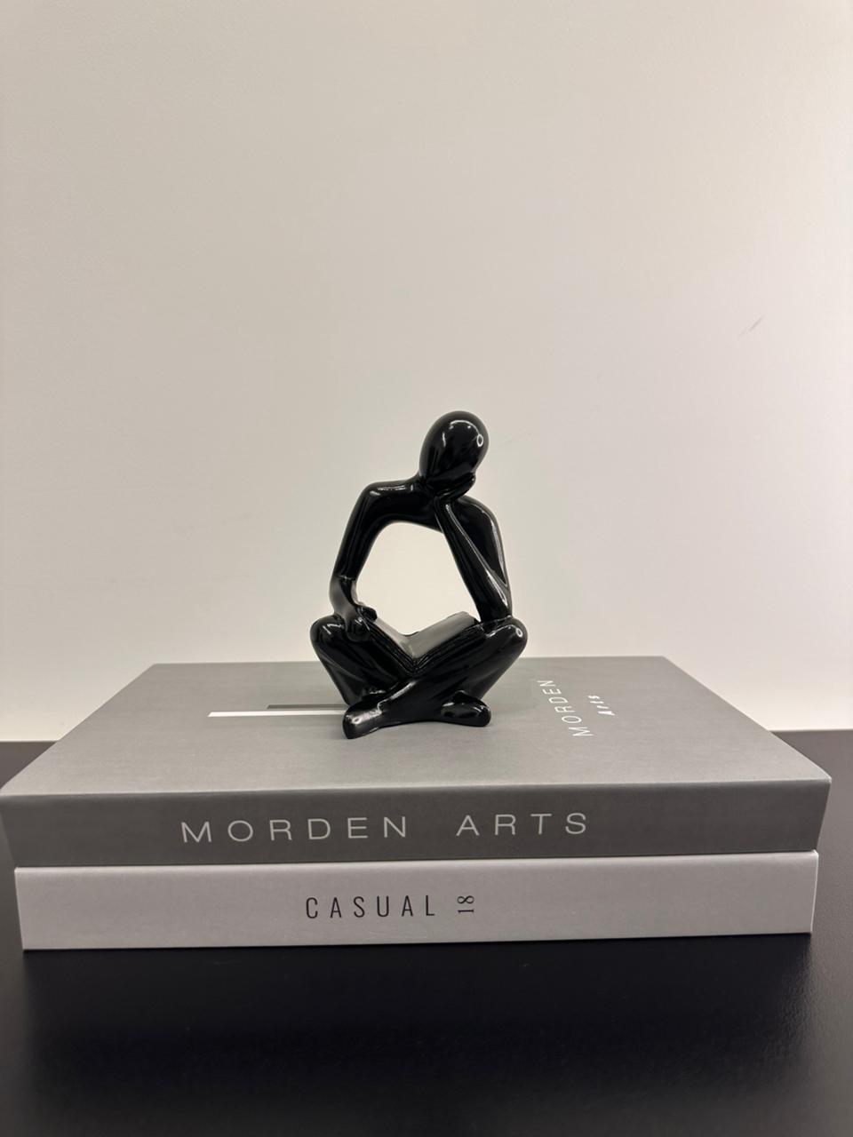 An artistic resin sculpture of a seated figure deeply immersed in reading, with crossed legs and one hand resting on the page. The minimalist form features a missing torso, creating a striking abstract look. A perfect piece for book lovers and modern art enthusiasts alike.