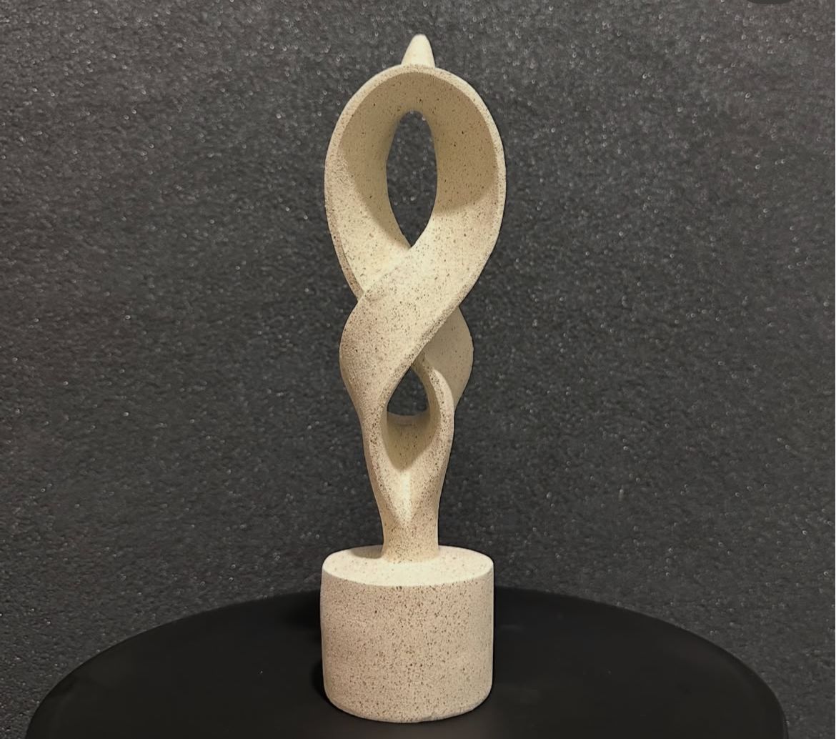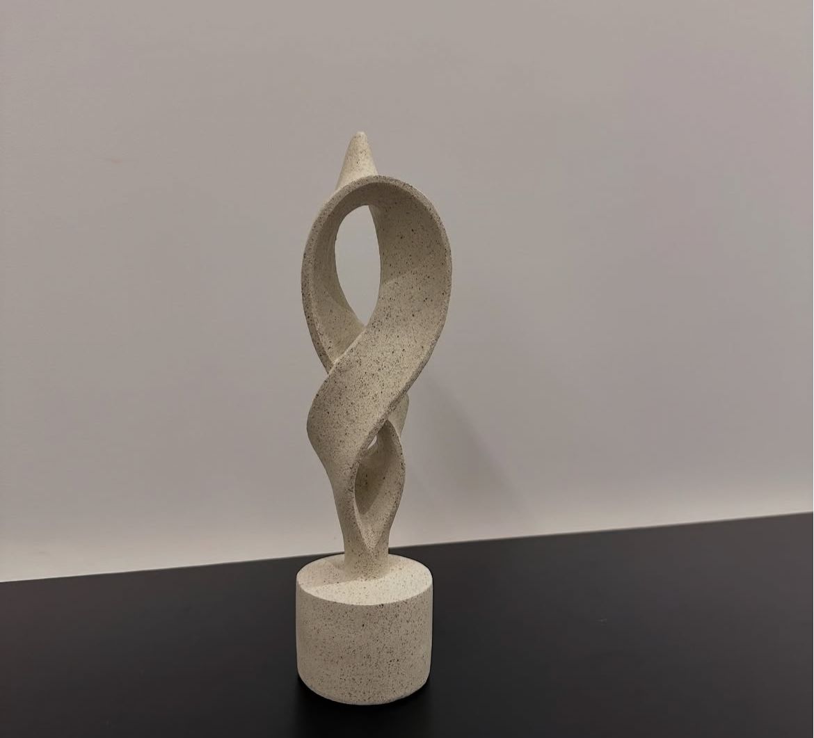 Elegant, handcrafted stone ornament featuring a twisted infinity design, perfect for adding a modern artistic touch to your home or office décor.