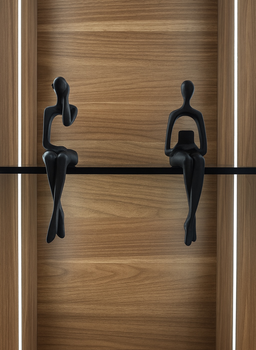 Stylish black abstract figurines in seated poses, perfect for shelves or desks. A contemporary accent piece that adds elegance and artistic charm to any space.