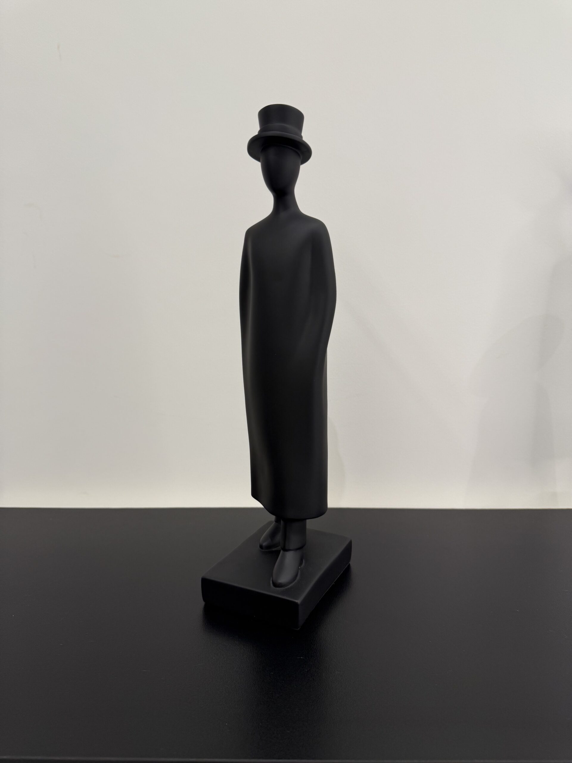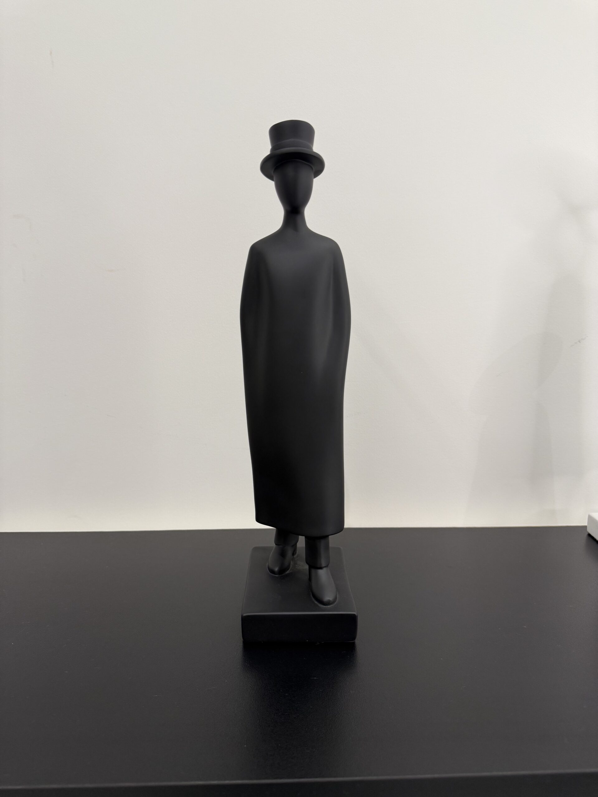 A sleek resin sculpture of a man wearing a cap, perfect for modern home décor. Available in black.
