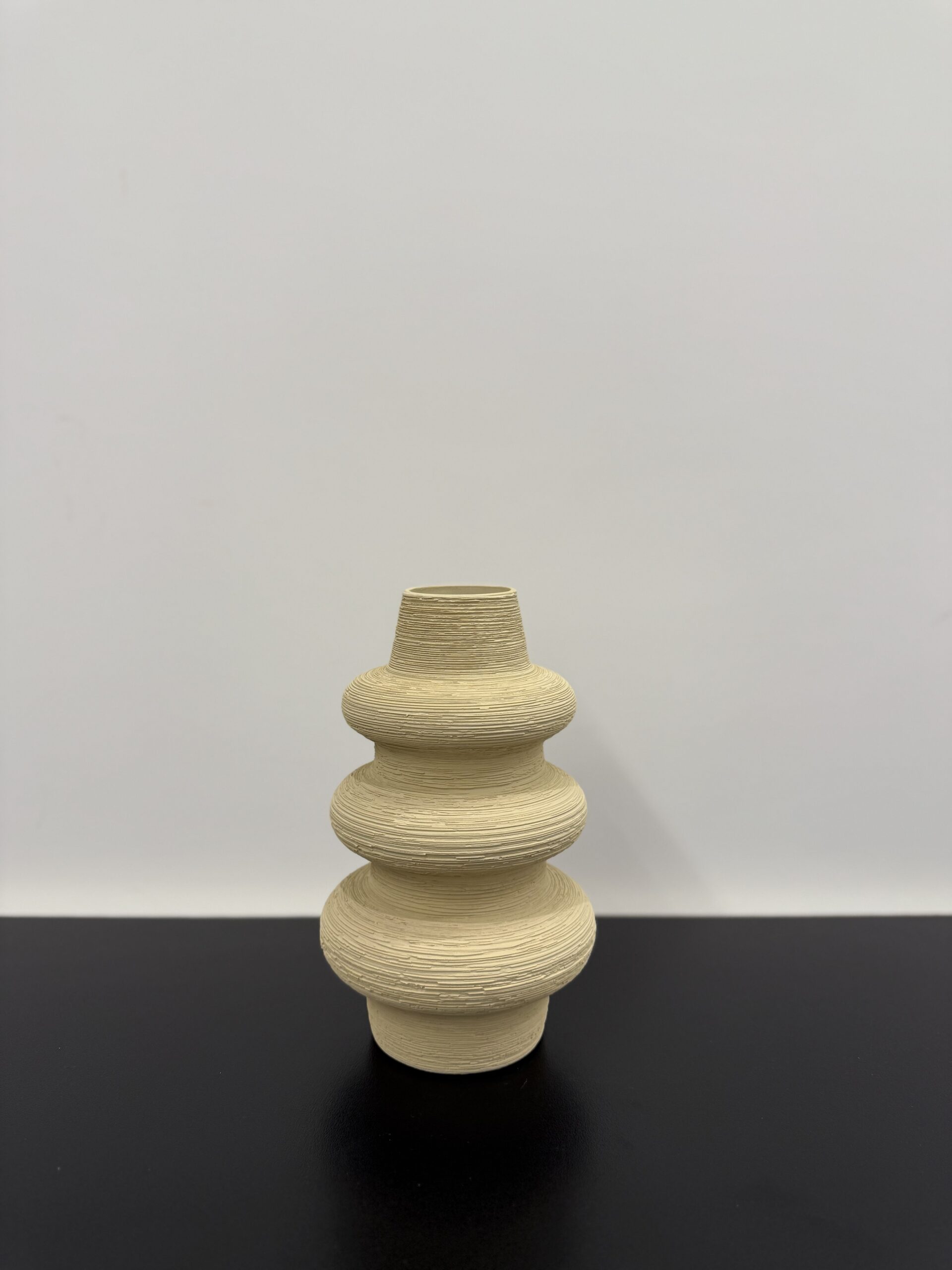 Make a bold statement with this sculptural ceramic vase, featuring a unique tiered design and natural sand-beige tone. The textured finish adds an earthy, tactile quality, perfect for adding depth to shelves, coffee tables, or entryway decor. A standout piece for contemporary or bohemian spaces.